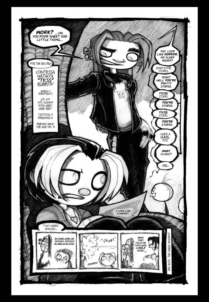 Without Tess, Sera would be a character that sits in dimly-lit rooms all day sighing at spiders, which sounds GREAT to me but probably not to anyone else. Tess’ purpose is to drag Sera out into the sun and start doing things people might actually want to read about.