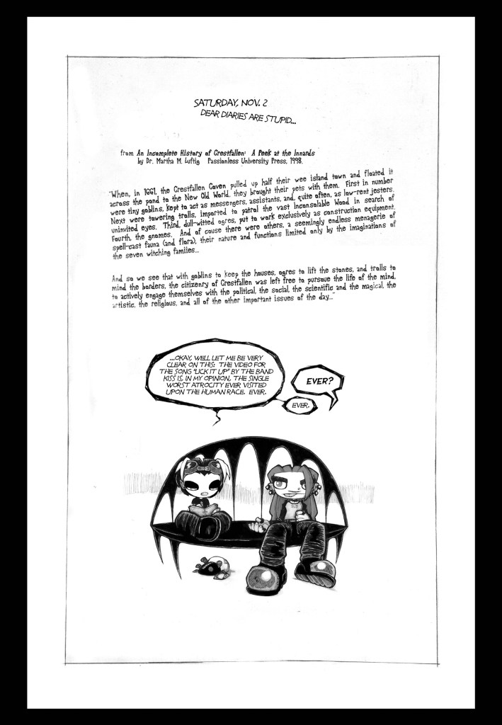 But then it occurred to me… If all you’d ever seen was the cover of issue one, Serenity Rose does kind of look like a Lenore clone. Giant, round, paper-white head, eyes ringed in black, general gothiness. If you never cracked the cover, you could easily think this is just another book about a cute little dead girl. Obviously this interviewer hadn’t cracked the cover.