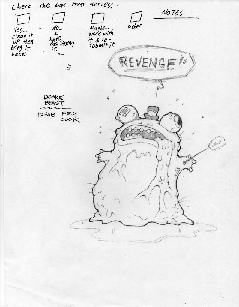 Several times a week on ZIM I’d go to the 7-11 next to Nickelodeon and attempt to hurt myself with “food.” Often a large amount of gummi. Or a large amount of gummi and a massive tankard of Mountain Dew. Or a large amount of gummi and a massive tankard of Mountain Dew and a Red Bull. Gotta stay alert and nimble at all times when you’re sitting in a cubicle, yeah? That consistent stream of highly-sugared coffee from 9 AM until 3 PM is simply not sufficient, momma needs her medicine. More sugar more caffeine sugar sugar LET’S GO. This “Dookie Beast” is not gonna draw itself got-dammit!
