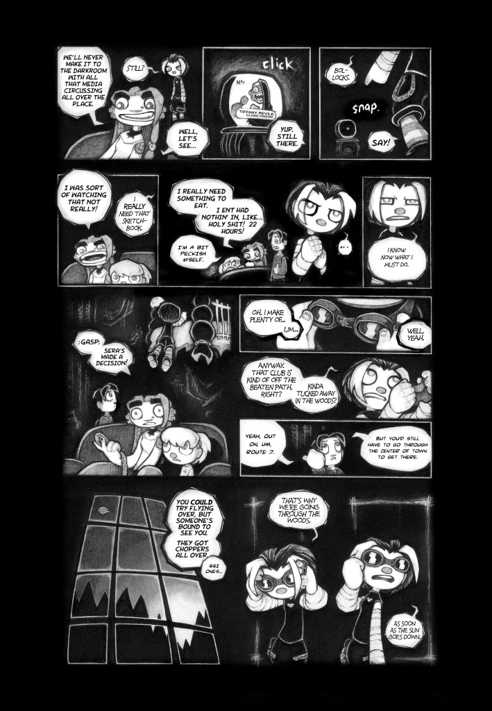 But getting back to this page, I just noticed Tess has a pocket watch on her wallet chain. This is a very cool and very luxurious way to live and I recommend it to you all. I had a wallet chain at the time I was drawing this page, but all it did was connect one part of my belt to another part of my belt. Absolutely useless for time-keeping!