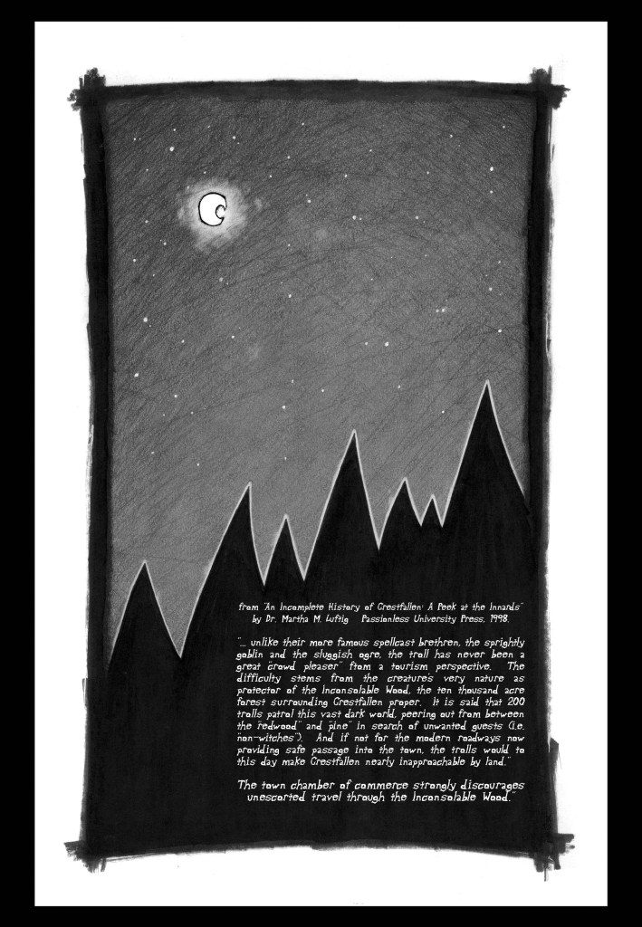 Not much on this page but a whole lot of mechanical pencil grinding. The text mentions trolls, though, so why don’t we look at some old drawings of Crestfallen critters?