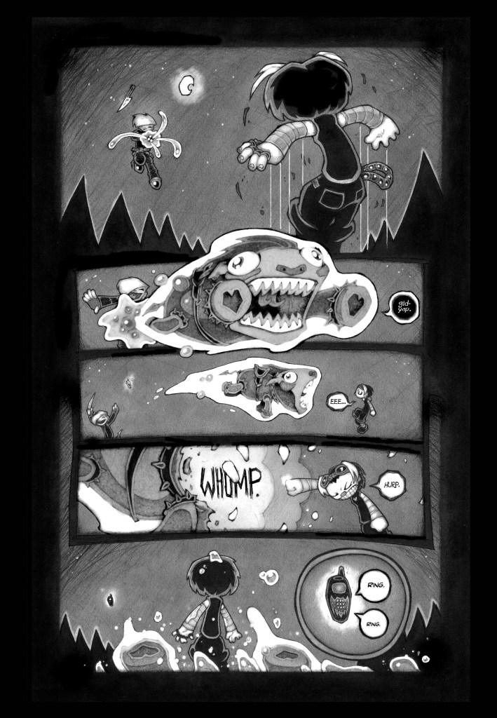 Tess definitely looks like she’s dangling from her left ankle. But what does that mean? Does telekinesis work like reaching out a long, invisible arm and gripping stuff with a phantom hand? How big can the hand be? Could Sera have chosen to carry Tess in a 10-foot invisible palm? How much weight could Sera put in that palm? There has to be some limit… She couldn’t scoop up all of Crestfallen and huck it across the ocean. OR COULD SHE?