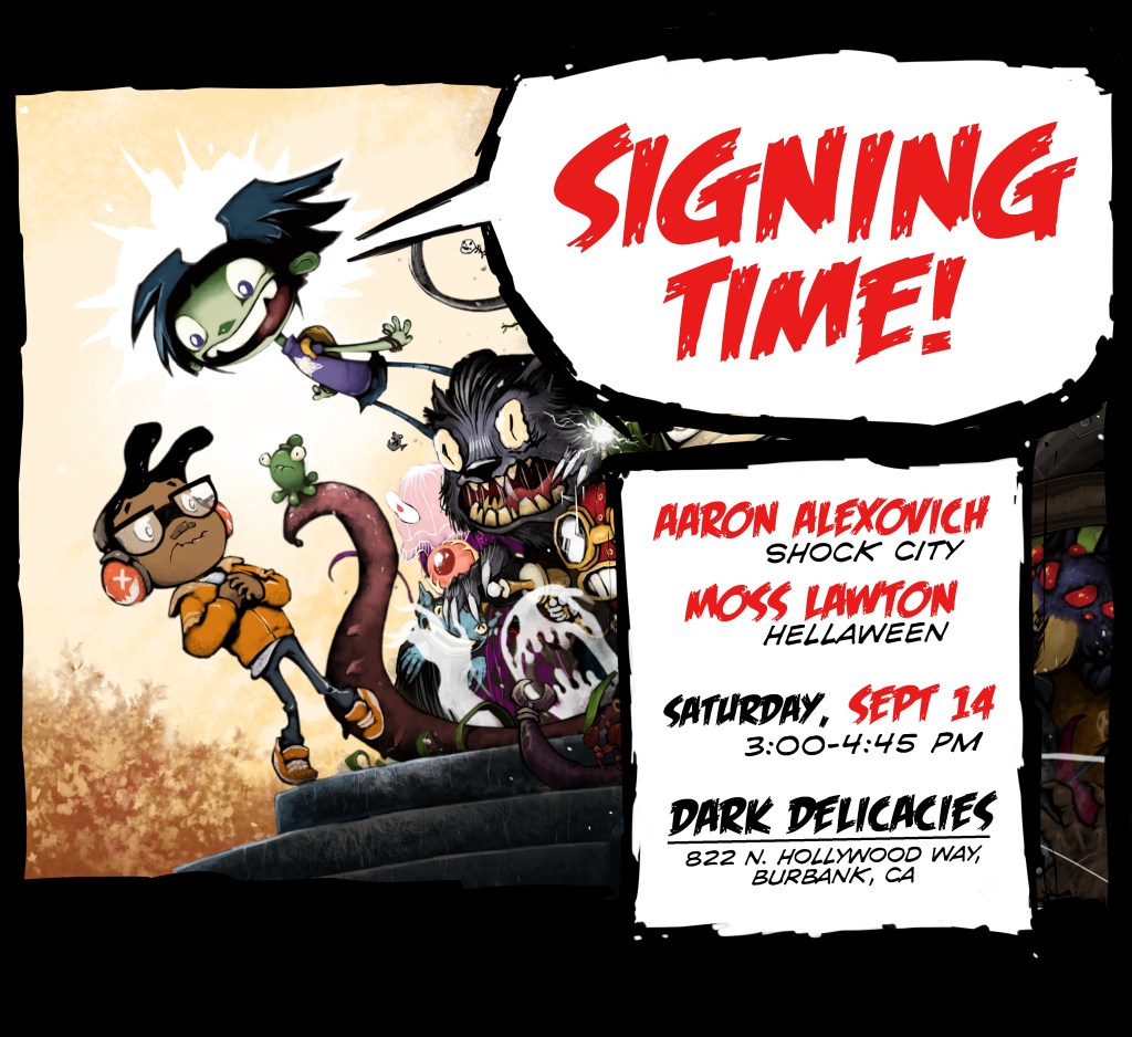 THRILLED to be having this thing at Dark Delicacies, a specialty horror book and memorabilia shop in Burbank and one of my favorite places on earth. I’ll be signing alongside fellow creepy comic artist and official ZIM wrangler Moss Lawton. If you’re not familiar with their utterly bad-ass HELLAWEEN series, correct that immediately!! It’s honestly difficult to imagine someone liking my stuff but not theirs.