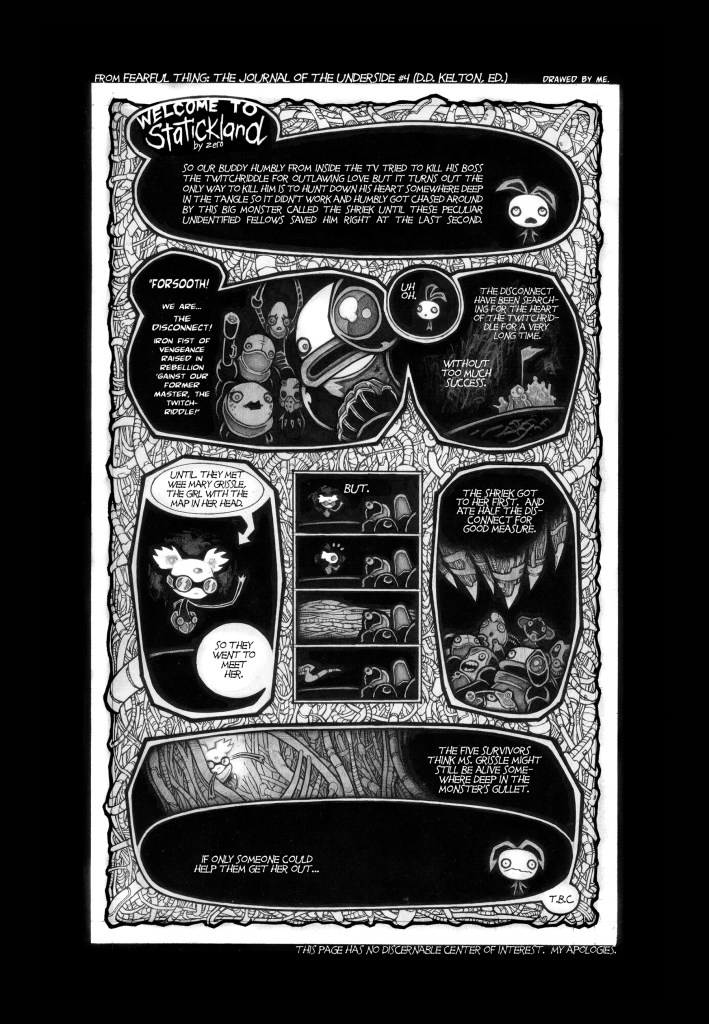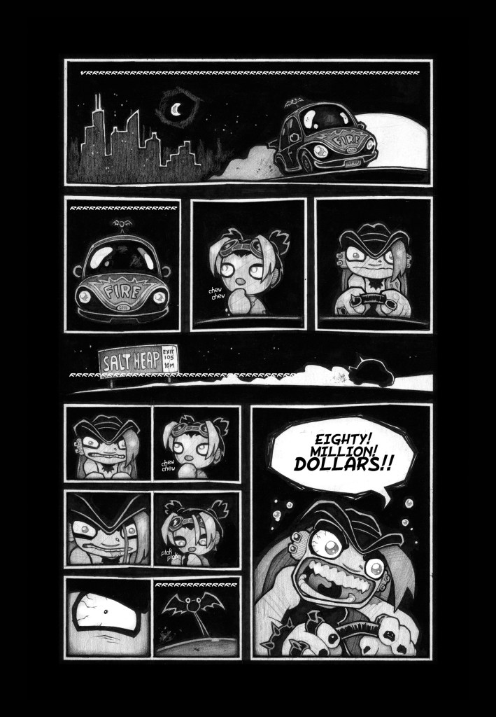 HOLD ON… Just noticed some weirdness in panel five: The Disconnect “met” Mary Grissle, and THEN they “went to meet” her? That makes no sense. It should probably be “Until they HEARD ABOUT wee Mary Grissle.” Maybe I’ll change that for future. Or maybe it should stay there forever and teach me about humility.