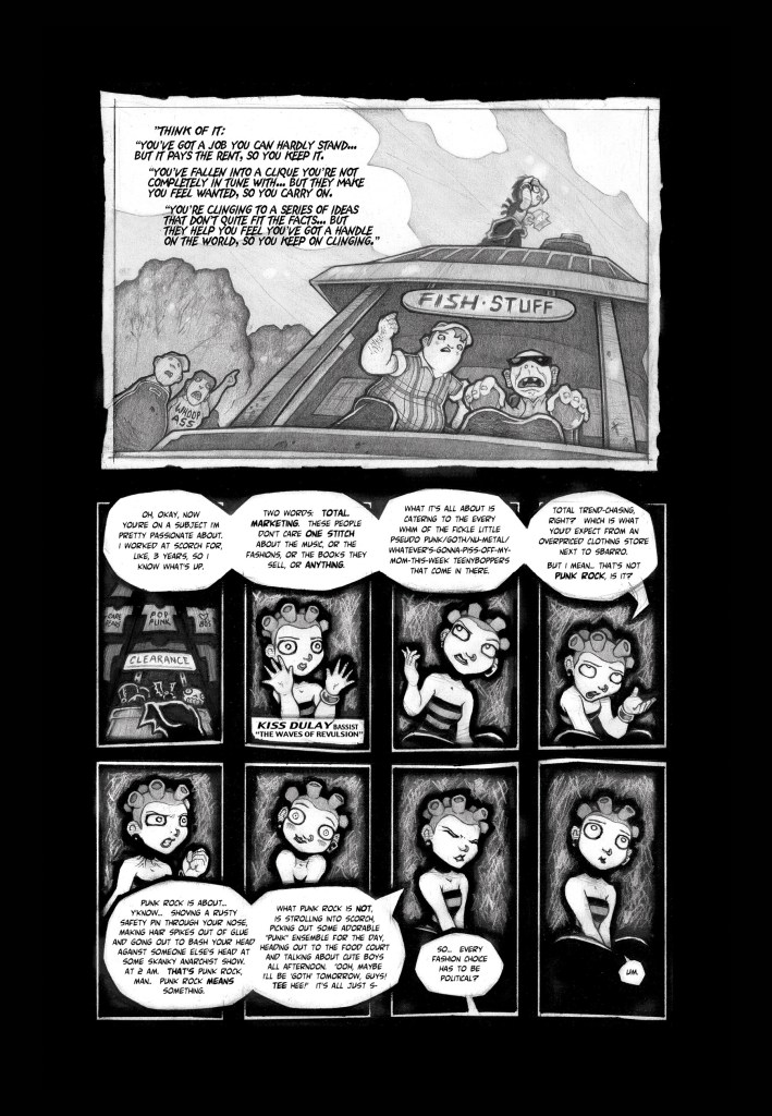 PANEL FOUR: The “I totally hate life” line comes from a critique of Serenity Rose that punched me right in the guts in 2004.